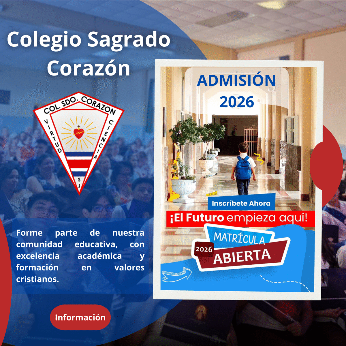 Admisión 2026Innovación, valores y aprendizaje de calidad. Formamos estudiantes para los retos del futuro, con una educación que inspira, transforma y se fundamenta en los valores y el amor de Dios, quien guía cada paso de nuestro crecimiento. Información Admisión ¿Quiénes somos?